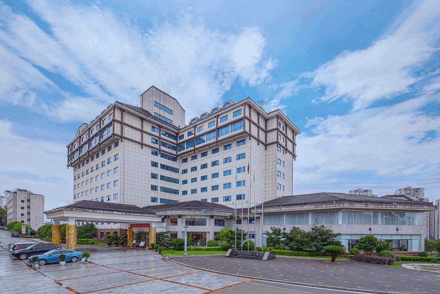 旗下張家界國(guó)際大酒店,地處市區(qū)三角坪澧水河畔,可近瞰澧水秀色,遠(yuǎn)眺天門(mén)奇觀(guān),信步城市公園,總投資約1.38億,總占地面積50余畝,主樓建筑面積20000余平米,酒店設(shè)有各類(lèi)客房共197間(套),是世界金鑰匙組織和中國(guó)名酒店組織成員。